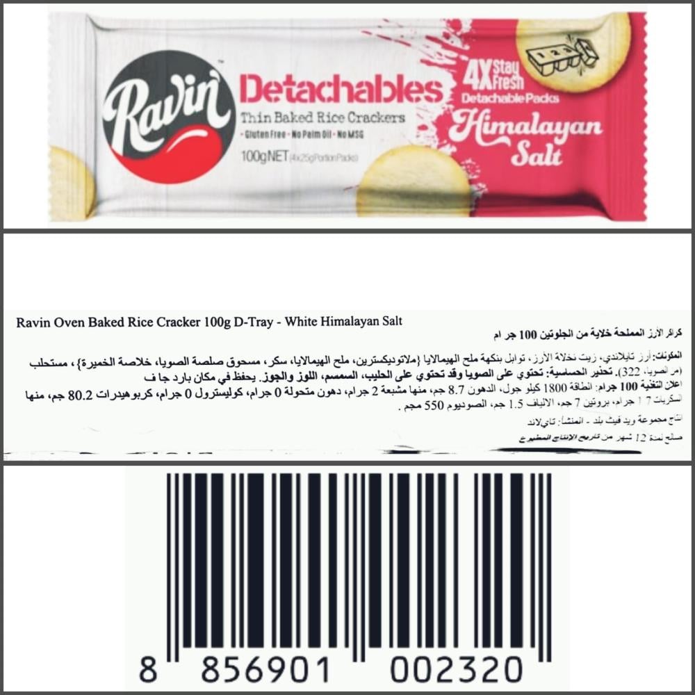 أرز أبيض تايلاندي، زيت نخالة الأرز، توابل بنكهة ملح الهيمالايا (مالتوديكسترين، ملح الهيمالايا، سكر، مسحوق صلصة الصويا، خلاصة الخميرة)، مستحلب (322)