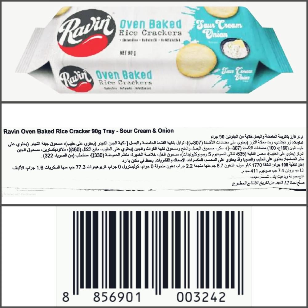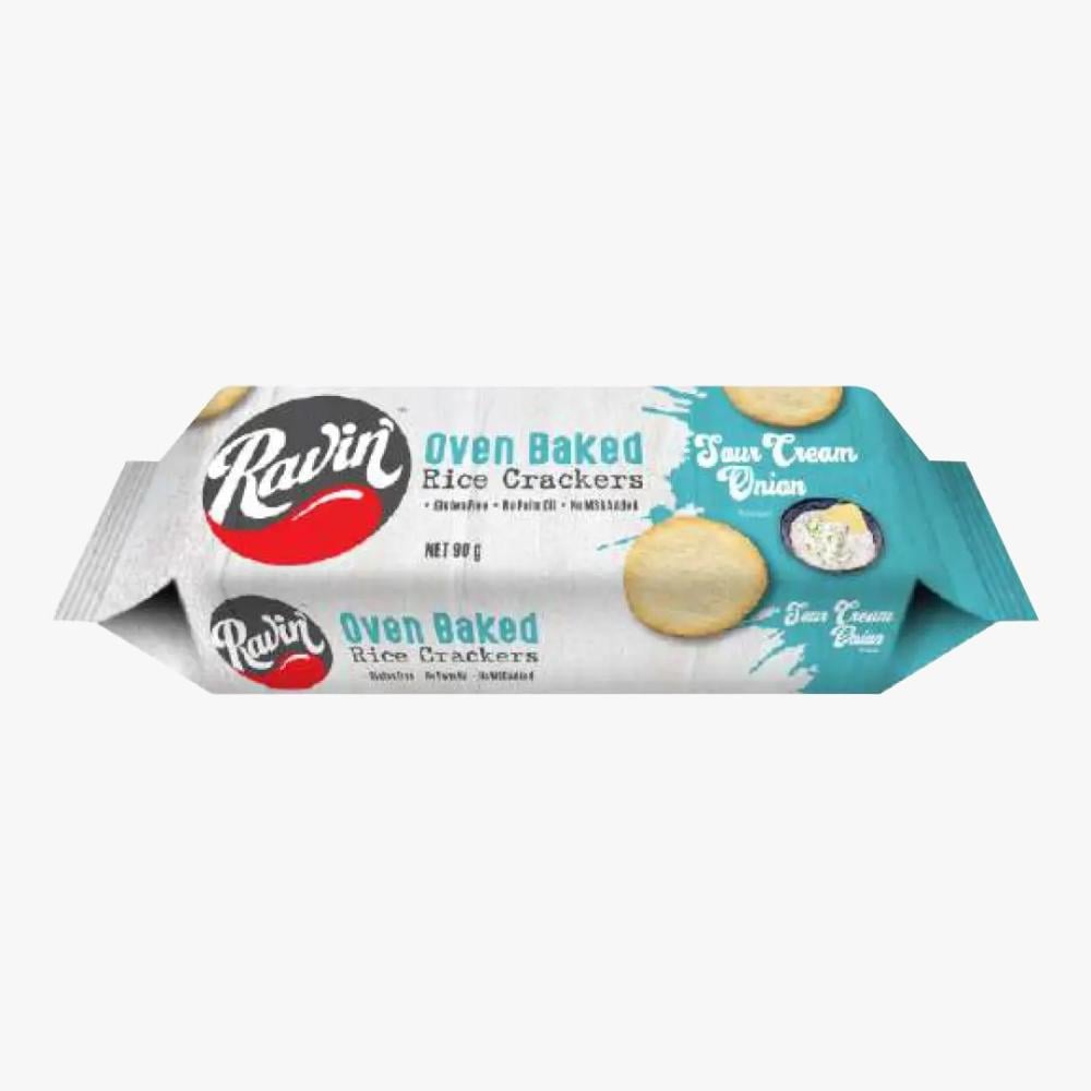 رافن مقرمشات الأرز مخبوزة غير مقلية بنكهة الكريمة الحامضة والبصل 90 جرام
