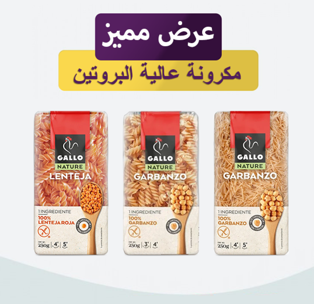 منتجات مشمولةيمكنك البحث في المنتجات الجاهزة التي لا تحتوي على خياراتجاللو مكرونة العدس الأحمر فوسيللي عالية البروتين خالية من الجلوتين 250 جرامجالو مكرونة بالحمص فوسيللي عالية البروتين خالية من الجلوتين 250جرامجالو مكرونة الحمص فيرميسيلي عالية البروتين خالية من الجلوتين 250جرام