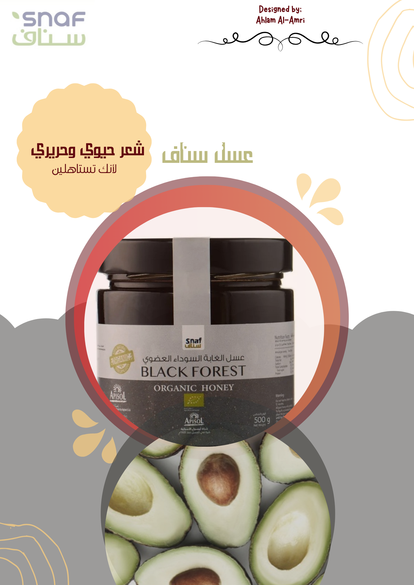 -المكونات: نصف حبة أفوكادو ناضجة، وربع كوب حليب دافىء، 3ملاعق من عسل الغابة السوداء من سناف.